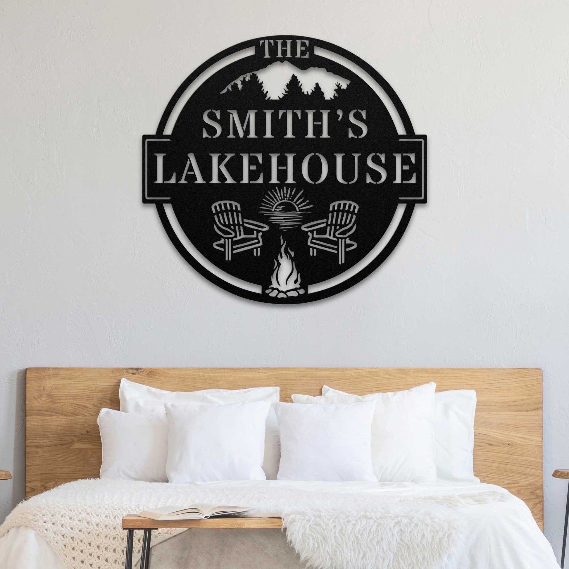 Celebrate your family's lakeside gatherings with our personalized Mountain & Sunset Lakehouse Sign. Crafted with a picturesque backdrop of mountains and a warm sunset, this sign features Adirondack chairs beside a gentle fire, encapsulating the ideal outdoor escape. Customize it with your family name to make it the centerpiece of your lakehouse decor.